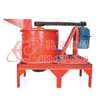 物料由機器上部垂直落入高速旋轉(zhuǎn)的葉輪內(nèi),在高速離心力的作用下,與另一部分以傘狀形式分流在葉輪四周的物料產(chǎn)生高速撞擊與粉碎,物料在互相撞擊后,又會在葉輪和機殼之間以物料形成渦流多次的互相撞擊、摩擦而粉碎,從下部直通排出,形成閉路多次循環(huán),由篩分設(shè)備控制達(dá)到所要求的成品粒度。